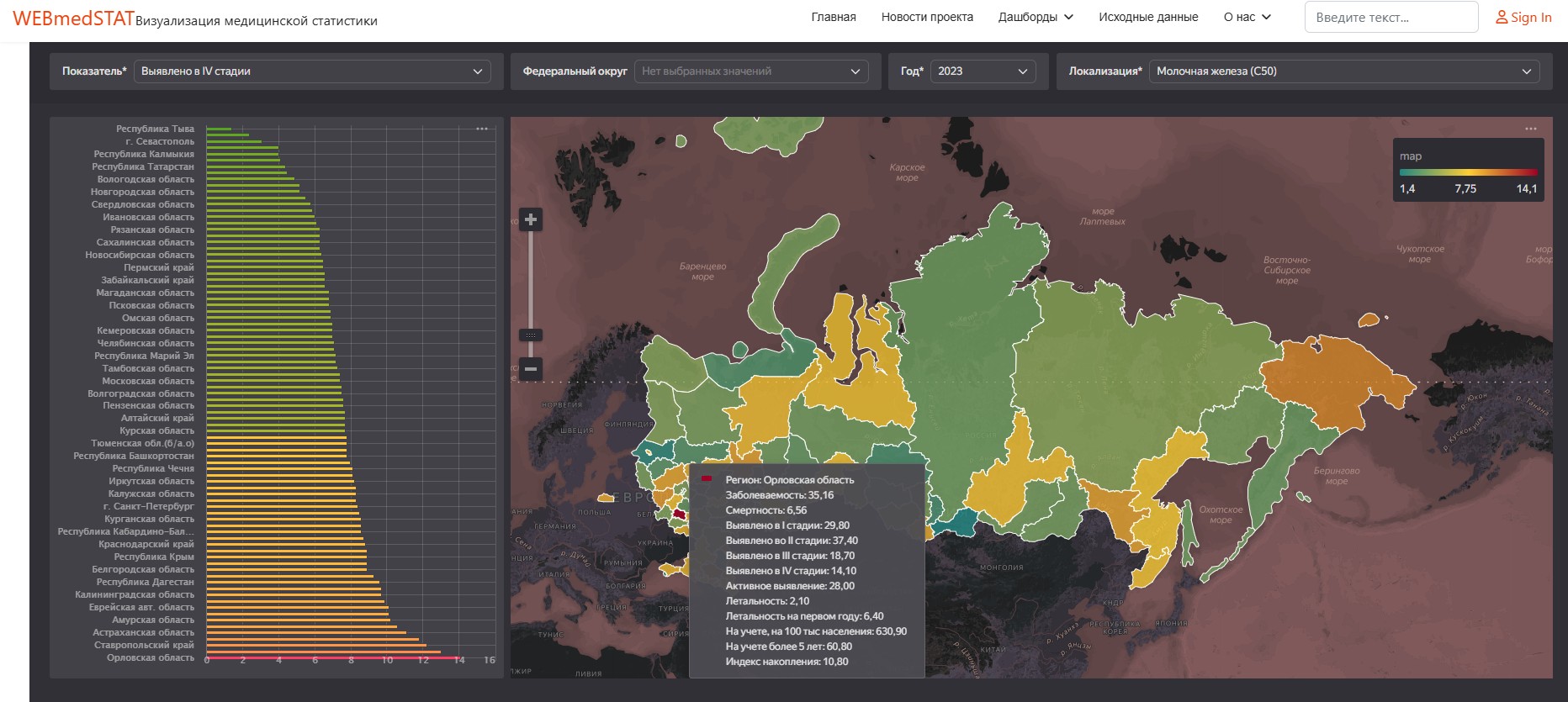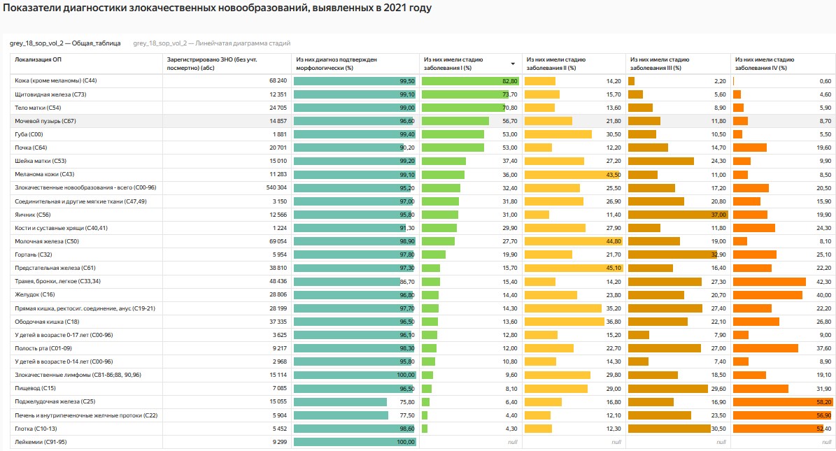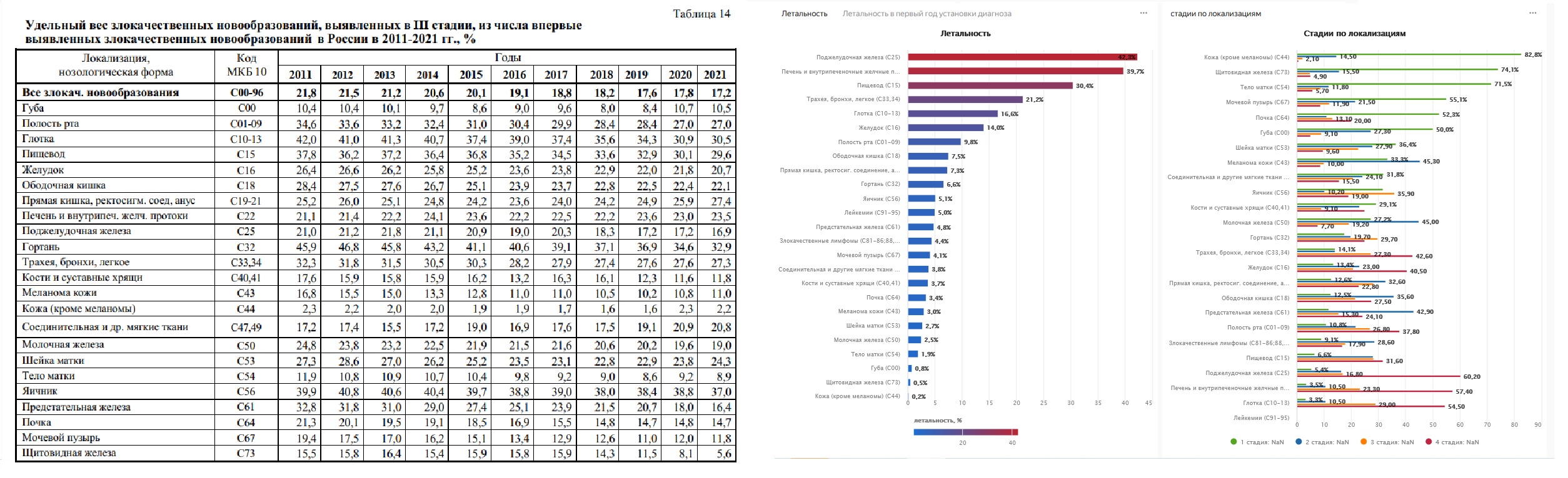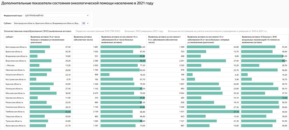 В Яндекс Мастерской были созданы визуальные аналитические панели (дашборды), иллюстрирующие отчет за 2021 год главного онколога Министерства здравоохранения России академика Андрея Дмитриевича Каприна. Эти дашборды визуализируют только те данные, которые опубликованы в этом отчете.